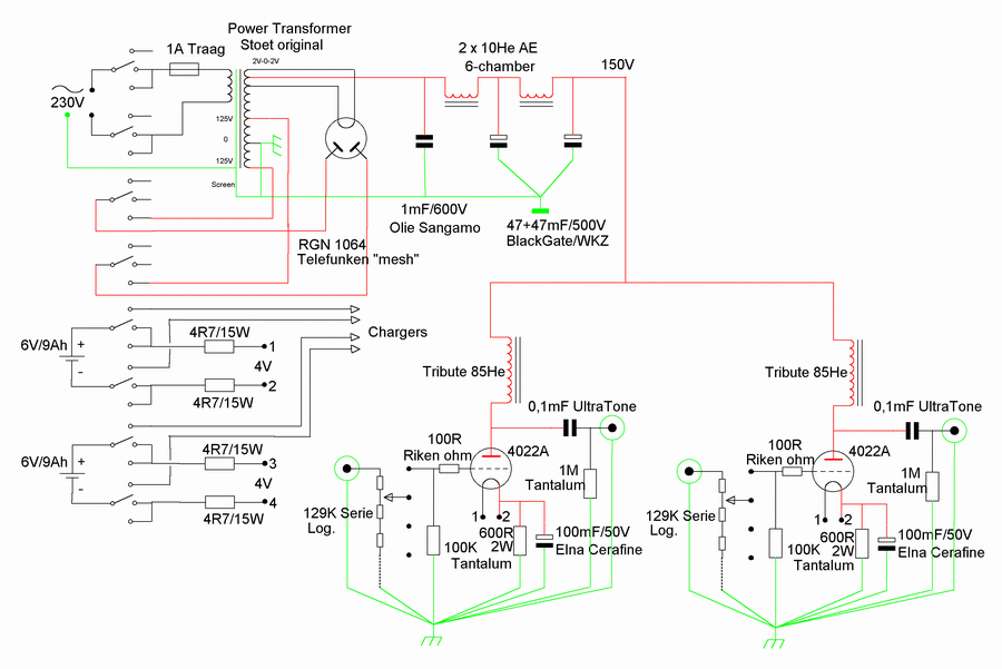 a RGN1064 mesh rectifier and is choke loaded (Lundahl) with a Ultra tone coupled